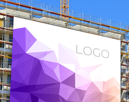 Groß Auffallen durch eine bedruckte Gebäudeverhüllung oder ein Großformat-Werbebanner